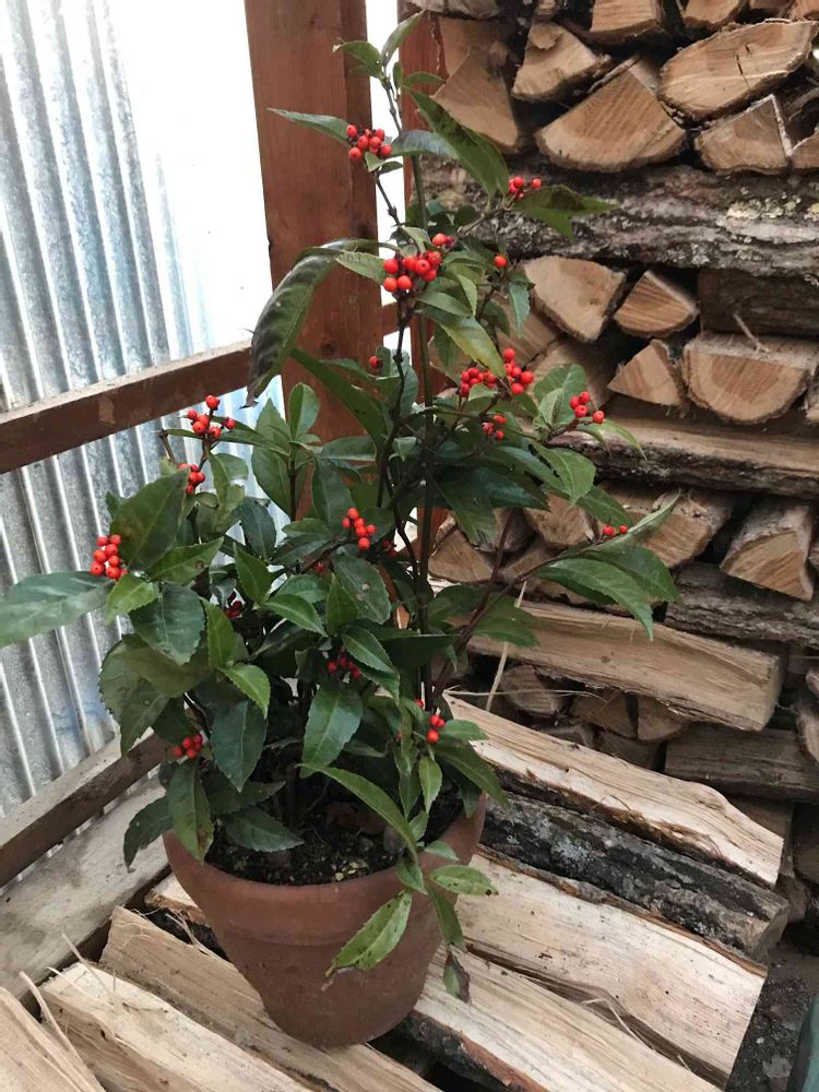 この千両、鉢ごとお隣の薔薇夫人から昨年12月にいただきました、