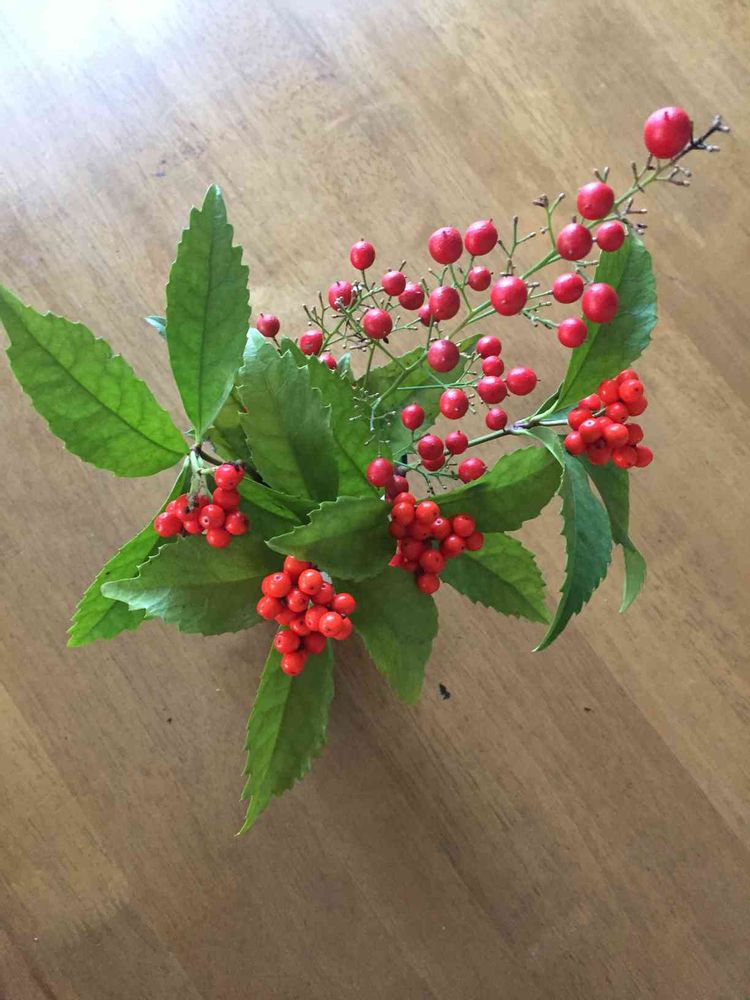 真っ赤な実をたくさんつけて実家の木が咲いていたので、去年末から正月に花達と一緒に飾ってました。花言葉見て良い意味なんだなぁ〜って🧐まだ生き生きしてるので南天の実と一緒にしてもう少し縁起を担がせてもらいまーす😊🙏