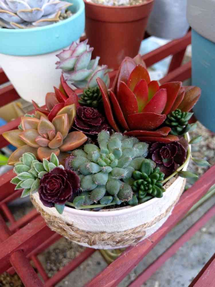 初めてリメ缶を作って、自宅で育てている多肉植物を寄植えしてみました。