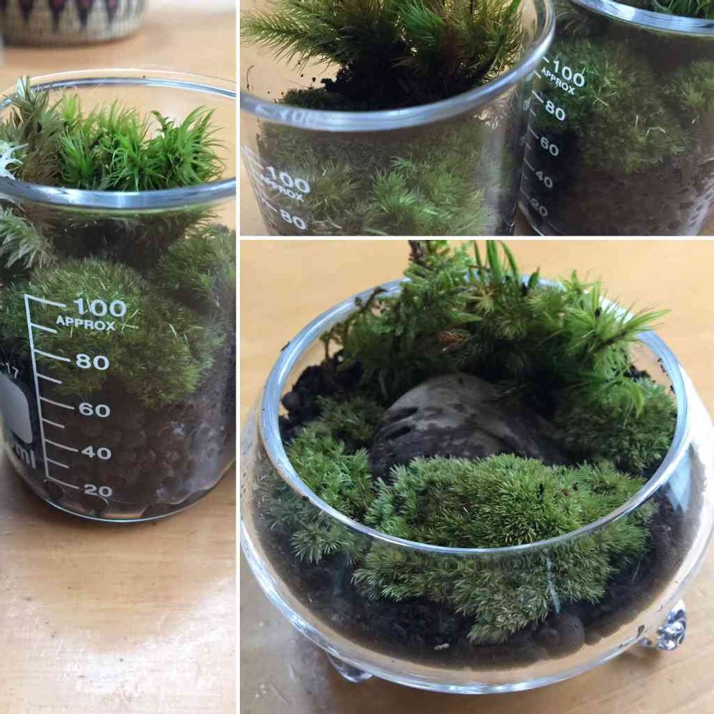ビーカーとガラス作家さんの器に苔リウムしてみました。