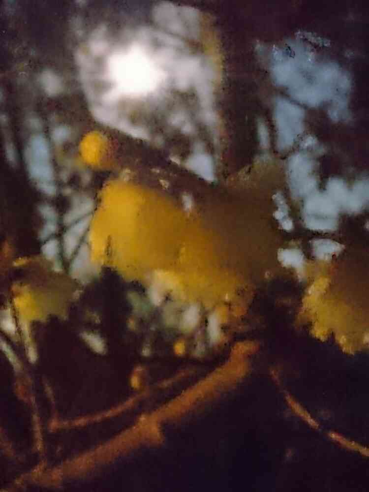 月とロウバイの雰囲気を大事にしたくて、フラッシュ使わずに撮るから、