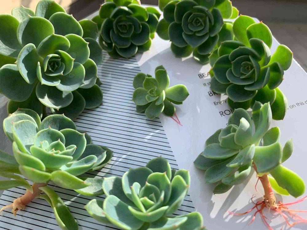 子株によっては勢いよく成長し出すと親株にくっつきながらも根を伸ばす子がいます。私は早く独り立ちしたいんだ﹏と言っているようで、そんな時は外します☺︎