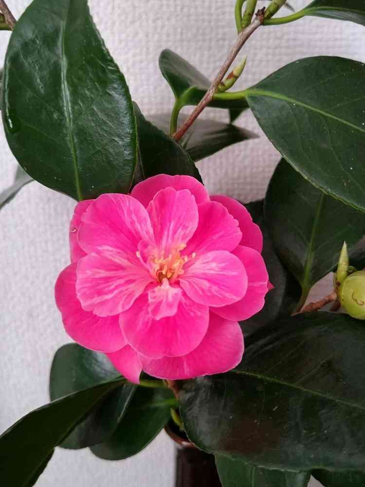 ピンクの濃い椿、あまり見た事ない色ですね🌼*・