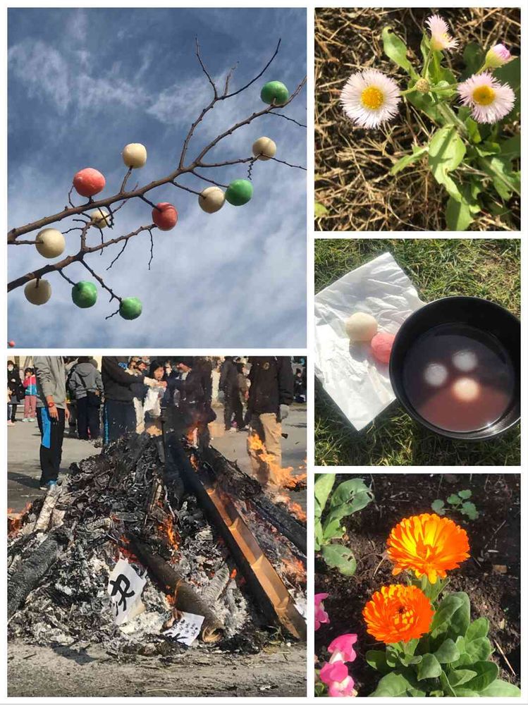 どんど焼きの火に暖まりながら、おしるこをいただき、紅白の丸いお餅をもらうのが毎年のお楽しみ😊