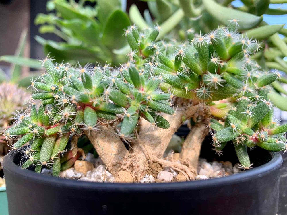 これはサボテンじゃないんです。多肉植物・塊根植物で、触っても痛くないんですよ。