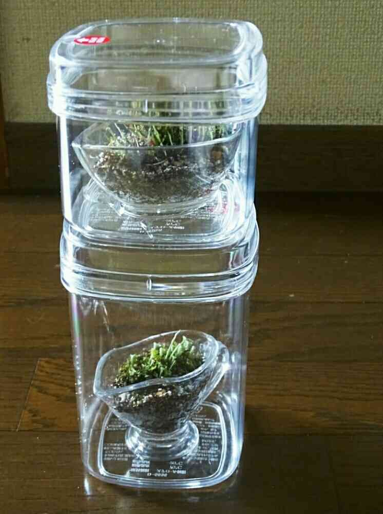 100均のプラスチック容器に水を張り入れてみました