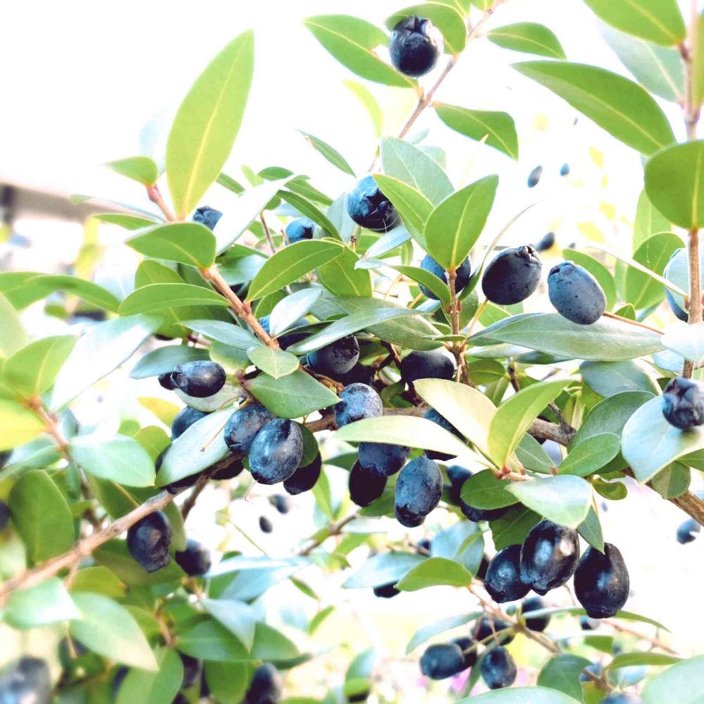 シャリンバイの実🍇〜バラ科だったんですね。春から初夏に白い花が咲いて、青い実になるんですね。