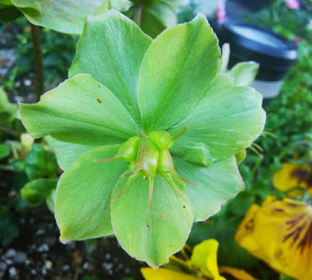 このクリスマスローズさんは ずっと 緑のお花なんですか? シベがかわりそうですが、、😆