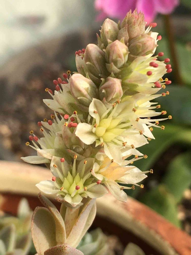 子持ち蓮華の挿し芽か、親残りか分かりませんが、季節外れに小さな開花してました⭐️✨
