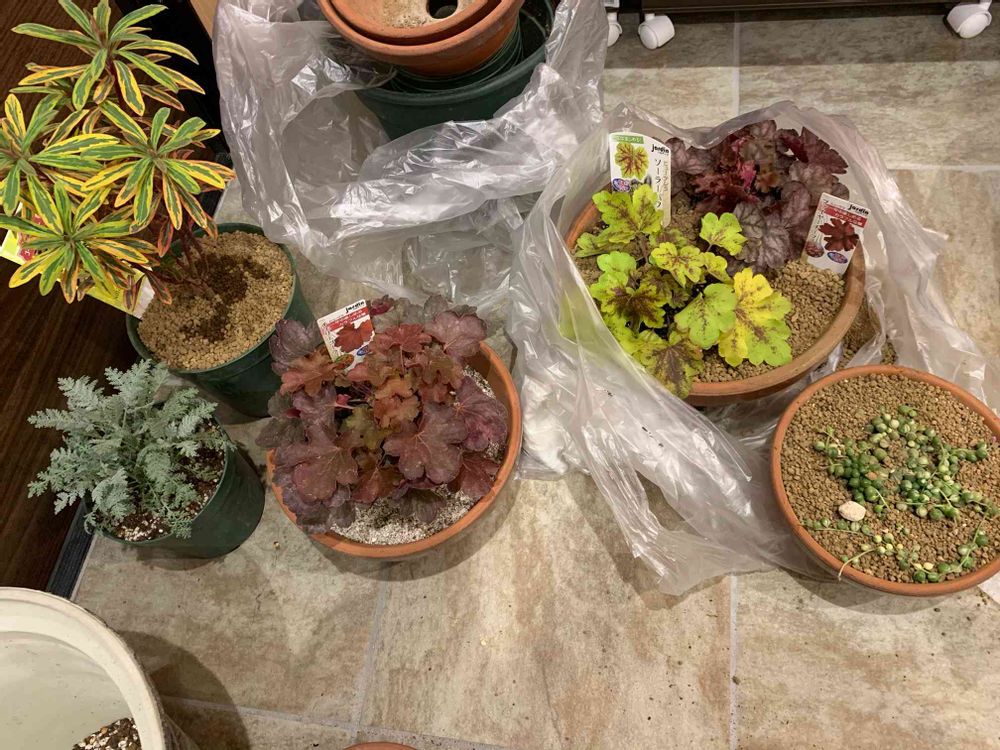 ヒューケラ、ひとつ、土が足りずに植え替えできず😢