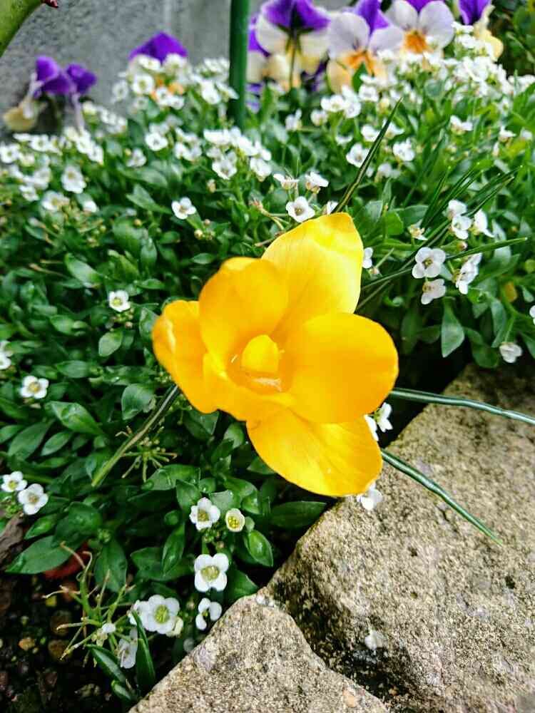 健気ですね~奥のビオラちゃんも、気になるのか、クロッカスを見つめていますね~💞