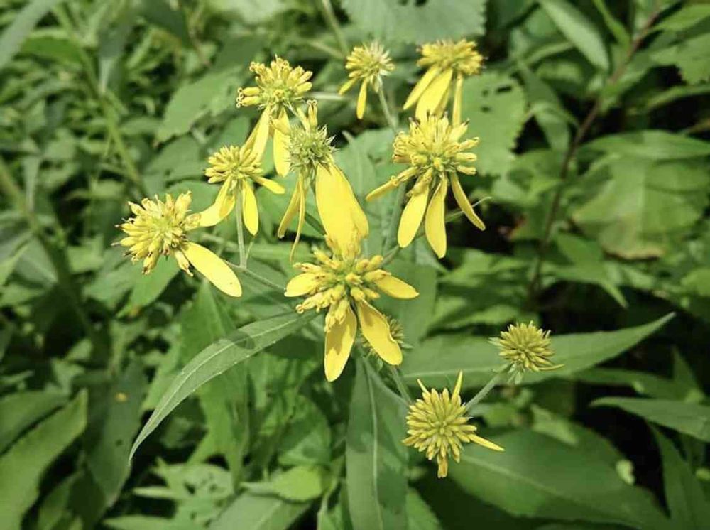 花はオオハンゴンソウに、葉っぱはキオンに似てますねー。🤔