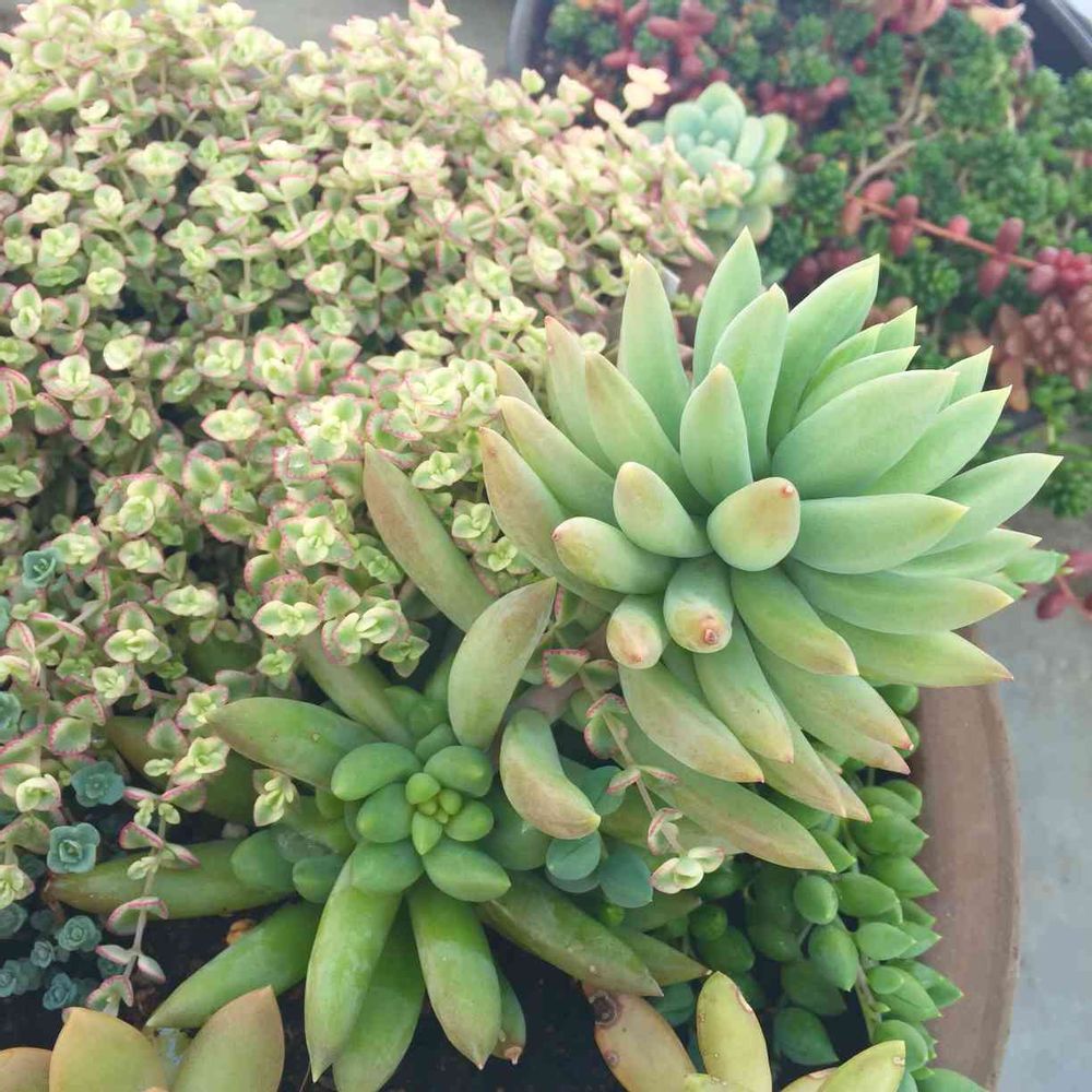 今日はあったかいからベランダに出て鉢をまわしてみたら、10月に300円のお店で買ったセディフォルメが賑やかになってました😄🎶その下にある百均のグリーンネックレスも大きく育ってきて嬉しい💕