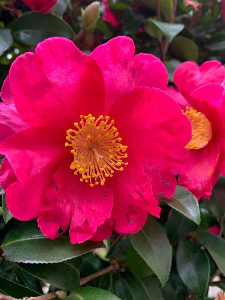 隣の垣根は赤い山茶花紅白で縁起も良いな❣️ )^o^(
