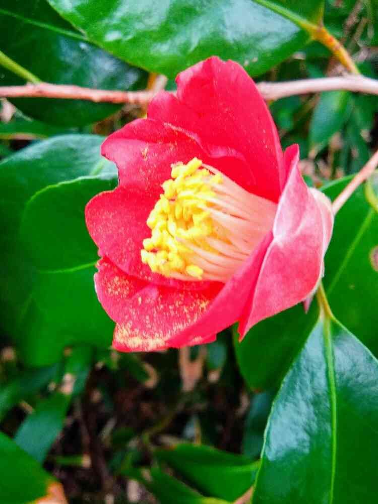 名前のとうり藪の中に咲いています。花粉たっぷりです。