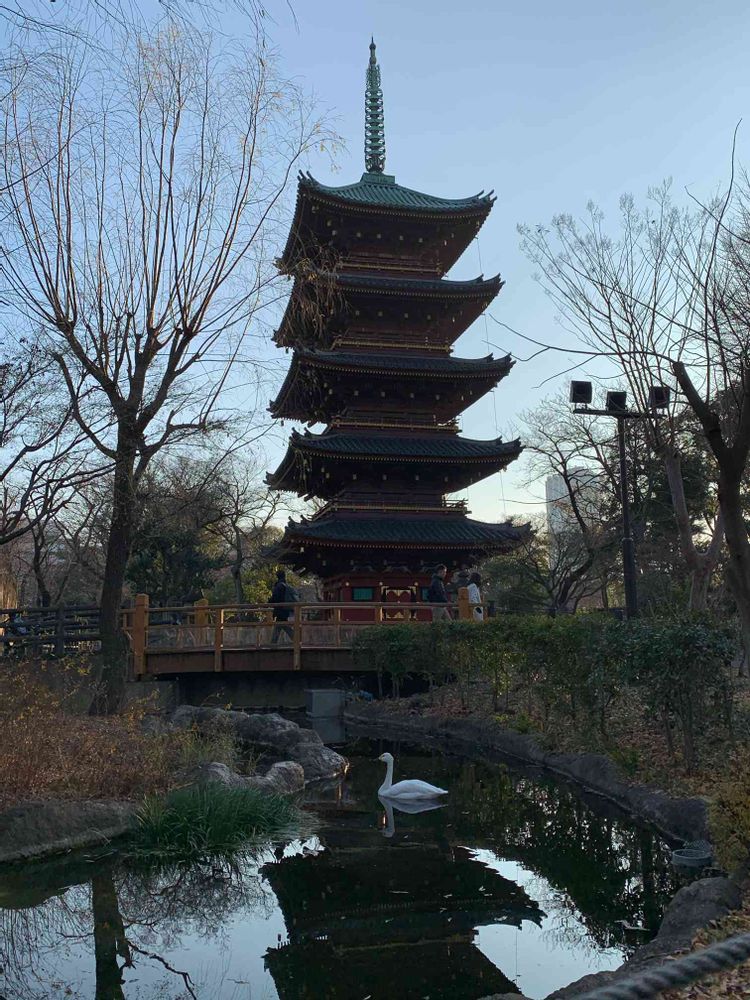 五重の塔前の池で優雅に泳いでいる白鳥🦢