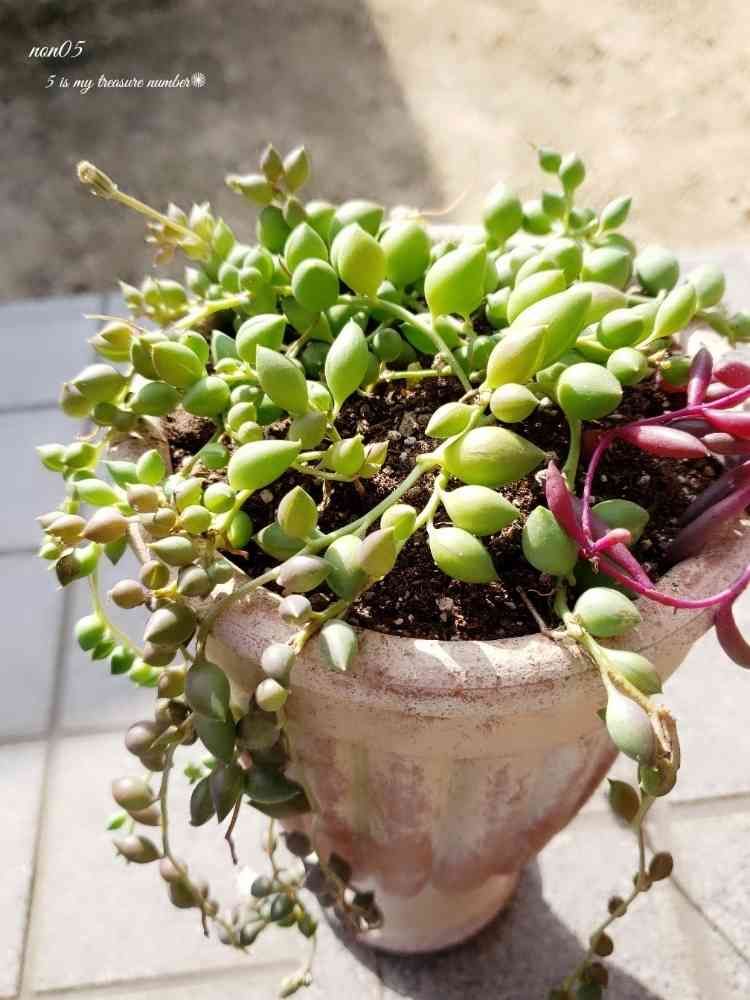 垂れ下がり具合と形が、とっても良い感じに鉢にマッチしてますね💕