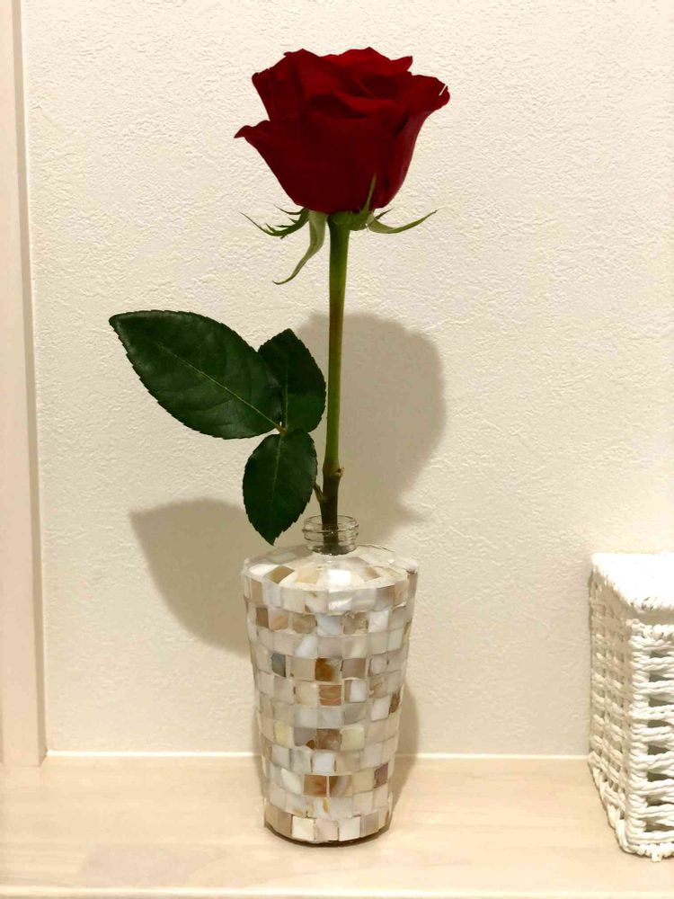 妻が一輪挿しを欲しがっていたので、妻と子供達と実家近くの雑貨屋さんへ行きました。お洒落な一輪挿しがあったので買ってみました。もちろん、妻の好きな薔薇を挿しました。ワンコインの一輪挿しでした。