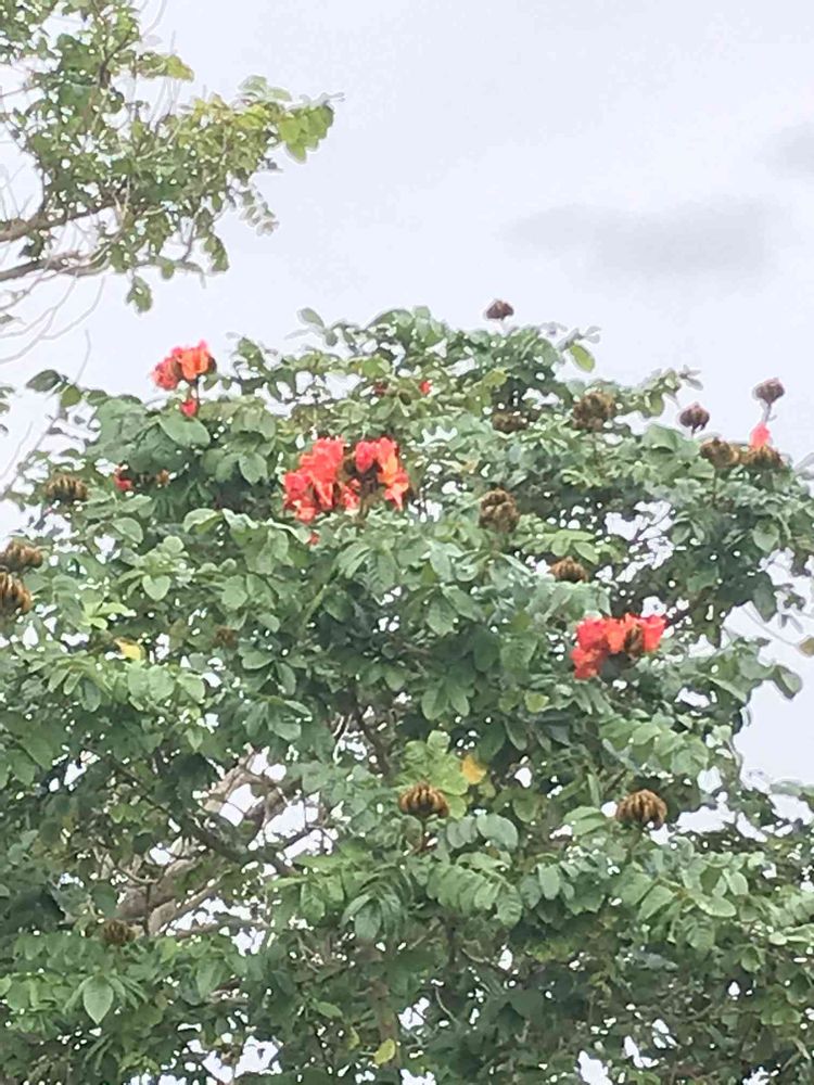駐車場に植えられてる大きな木、なんていう気かなー⁉️花が咲いてました❣️