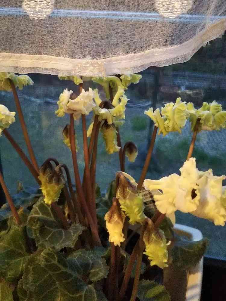 窓辺のシクラメン つぼみとお花が咲いた時の色どちらも好きです🎵
