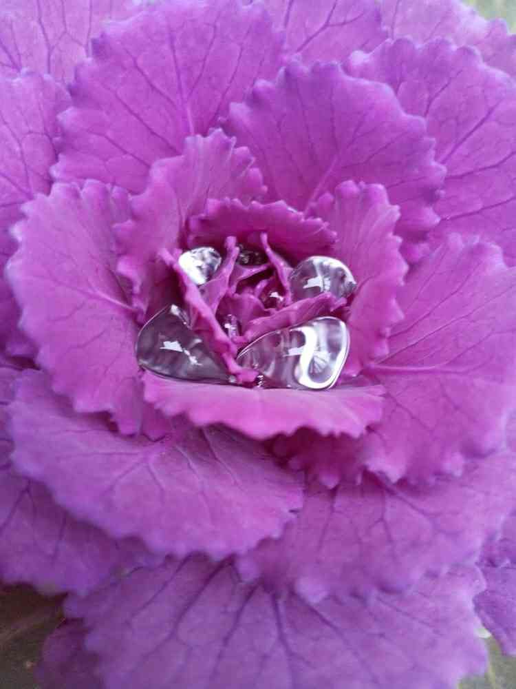 今朝、いちばんに見たのが葉牡丹さん、いっぱい涙をためて、真珠のように✨✨それで📱でパチリです😄