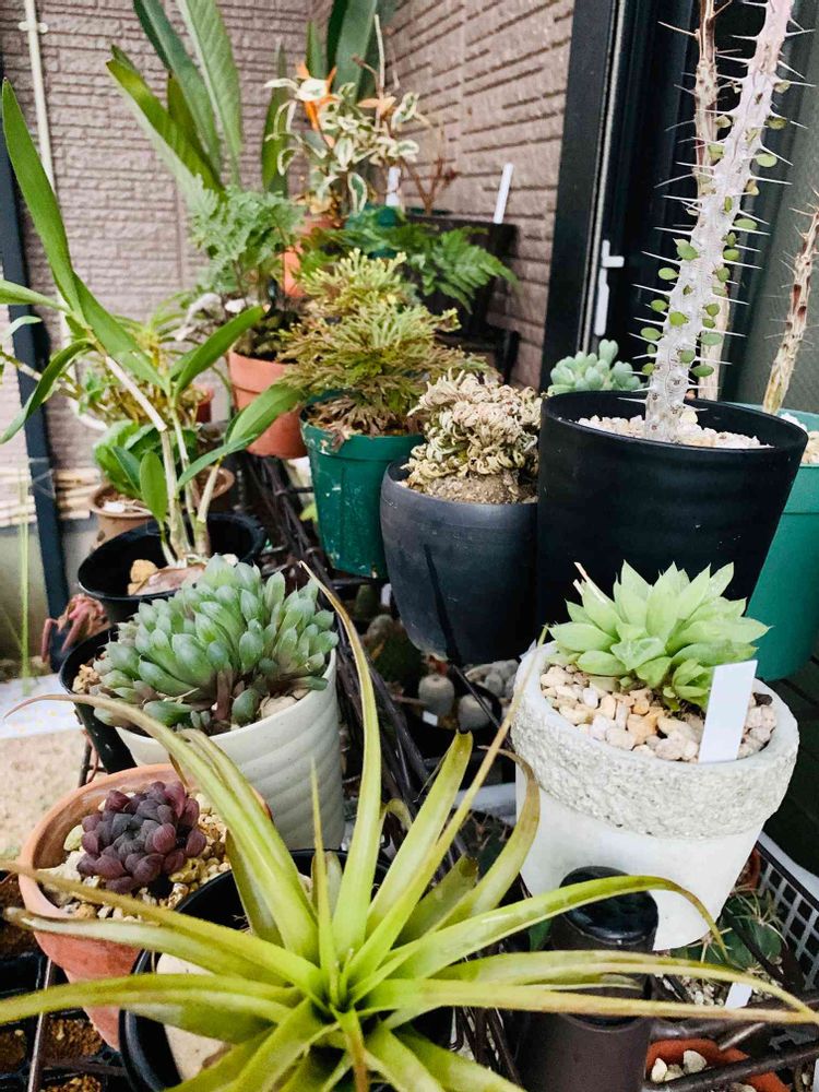 シダはイワヒバ三兄弟、奥にトキワシノブと石化シノブ。ハオルチアは名無しが殆ど💧デンドロビウムの鉢が風で飛ばされないよう、拾った石を入れています、ということで「石同好会」のお知らせです🤗