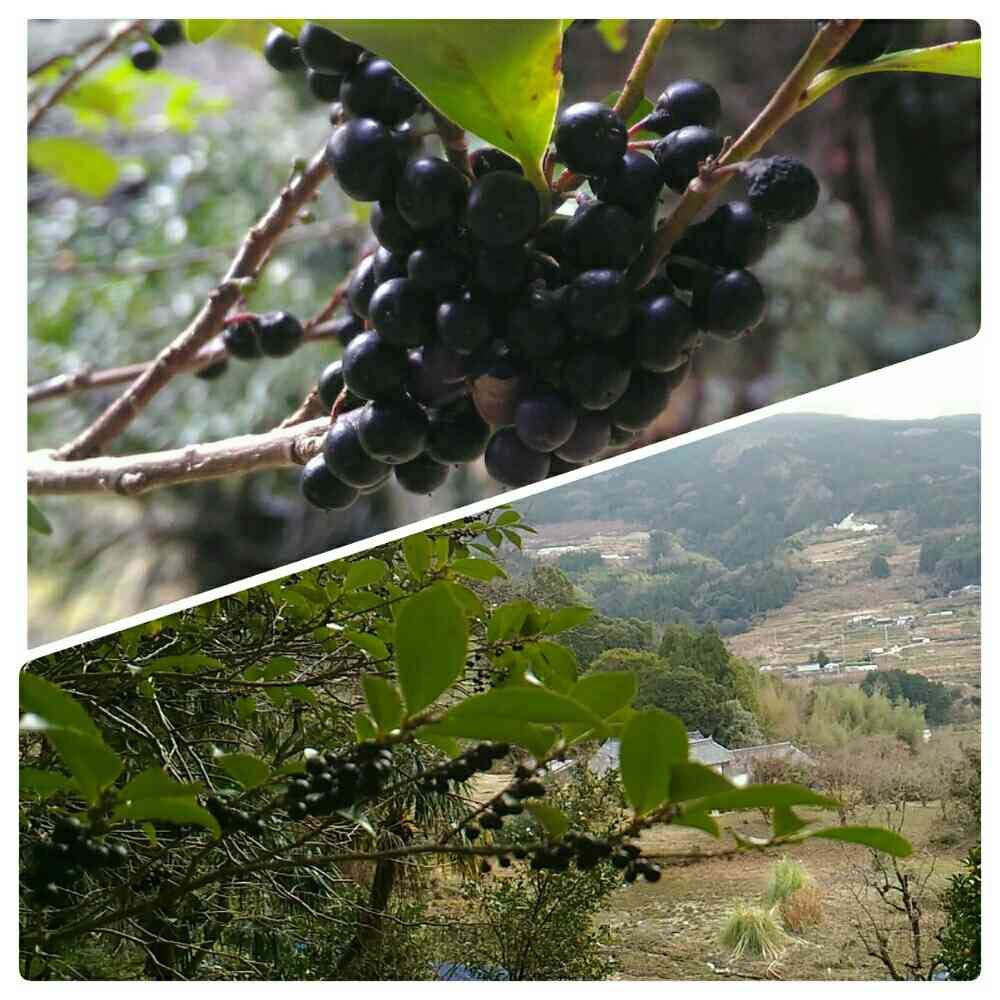 大きな常緑樹 びしゃこに黒い実かなっていました🌿📱📷
