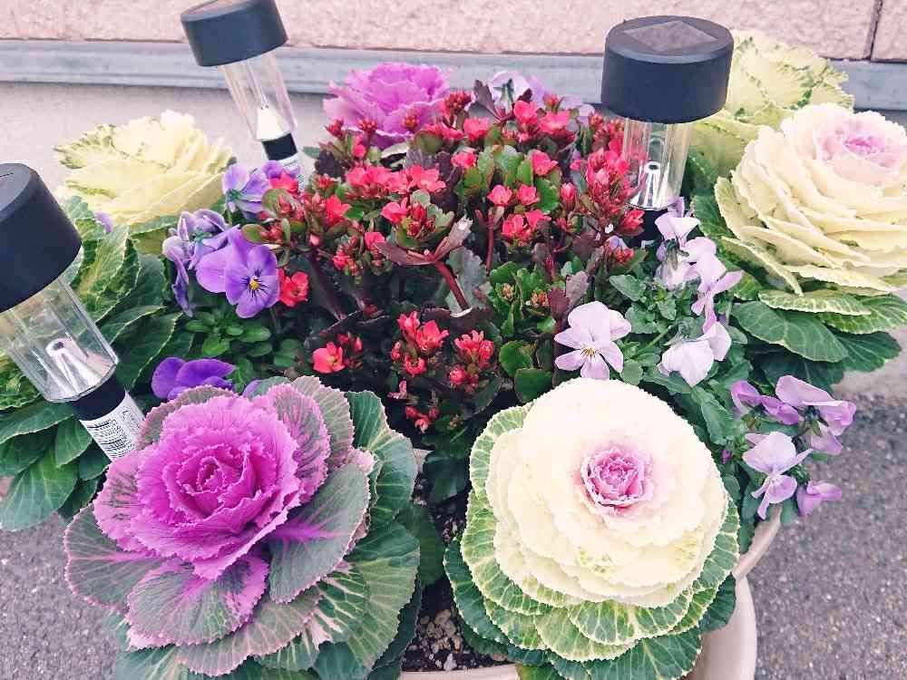 カランコエの赤と、立派な葉牡丹が良いですね〜❣️