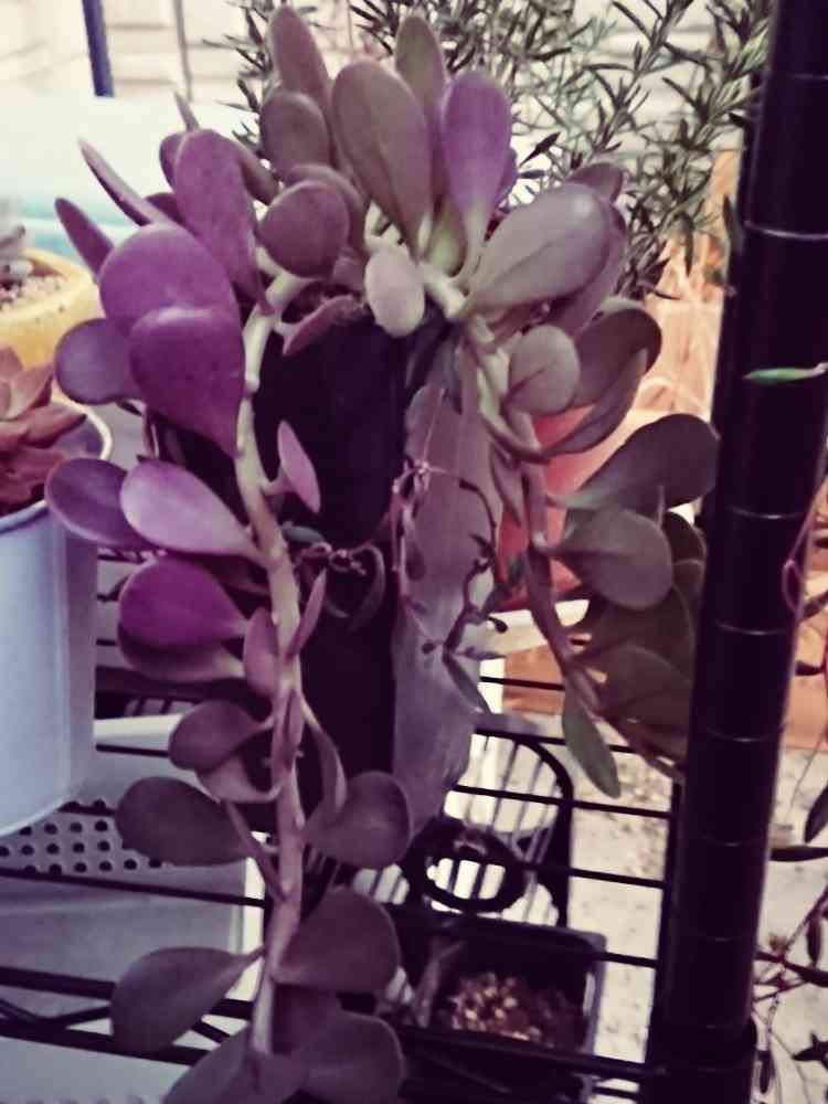夕方に撮影したので暗い背景ですが、赤というより紫加減がキレイ。半年てずいぶん垂れてきました。