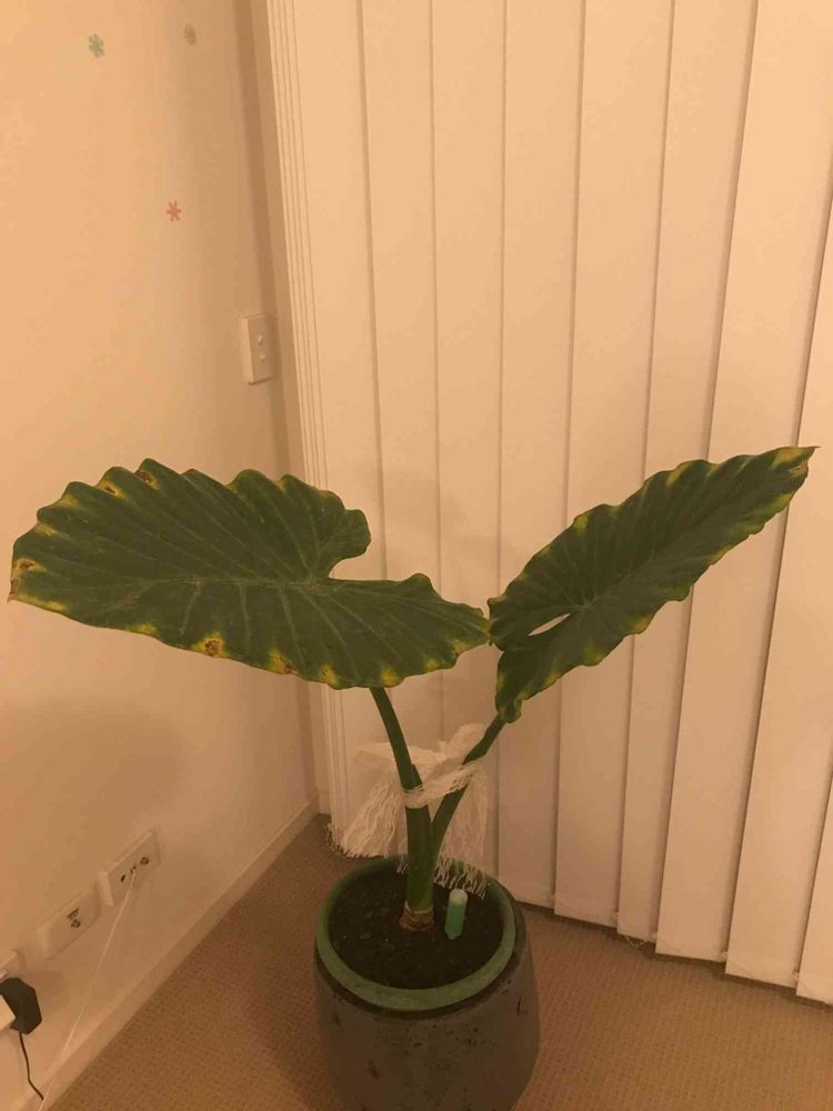 一回り大きい鉢に植え替えてまた室内へ移動。一時期は2週間事に新しい葉が出て5枚までいったのに、そこからどんどん枯れていったから、外に出してみたりしてギリギリ2枚を保ってたelephant ear(クワズイモ)さん。いまだに原因ははっきりしてないけど、どうかまた元気に増えてくれますように🙏🏻