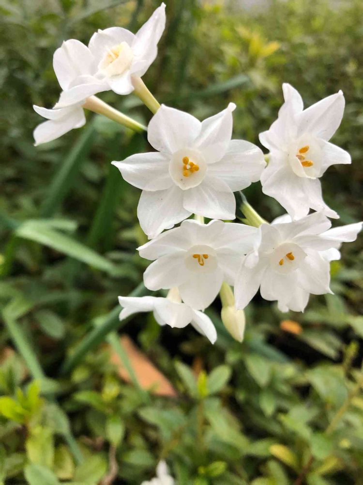 普通の水仙かなと思ってのぞいたら。真っ白で、珍しいですね🎵
