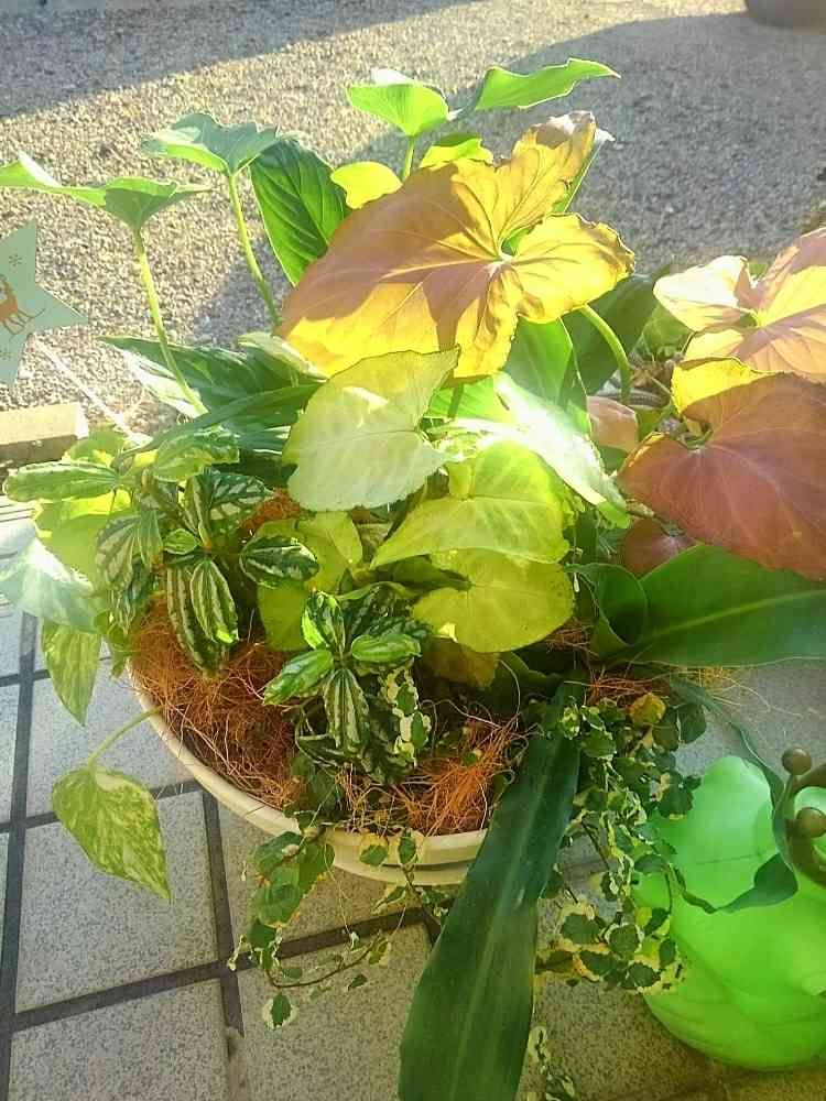 日頃世話になっている友人にあげようと思って家にあるもので作った観葉植物の寄せ植え