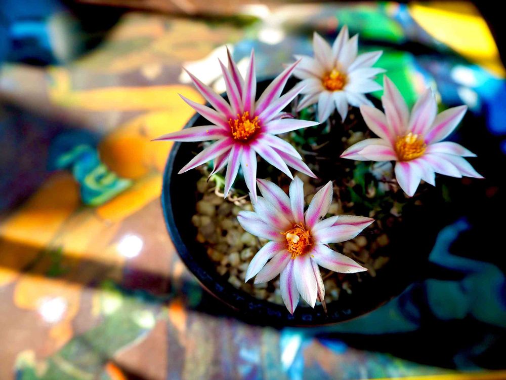 サボテンの生育よくわからないけど、お花綺麗で素敵な写真だなぁ✨