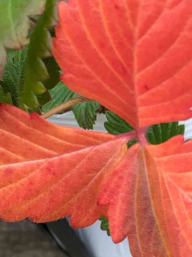 いちごの葉っぱってきれいに紅葉しないんです💦