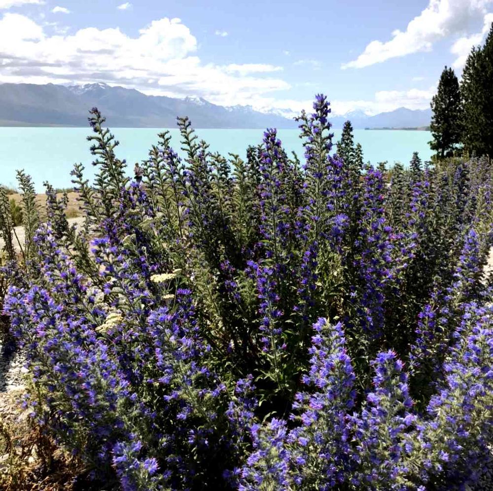 あちこちに咲いていて湖の色にとっても合う😃💕