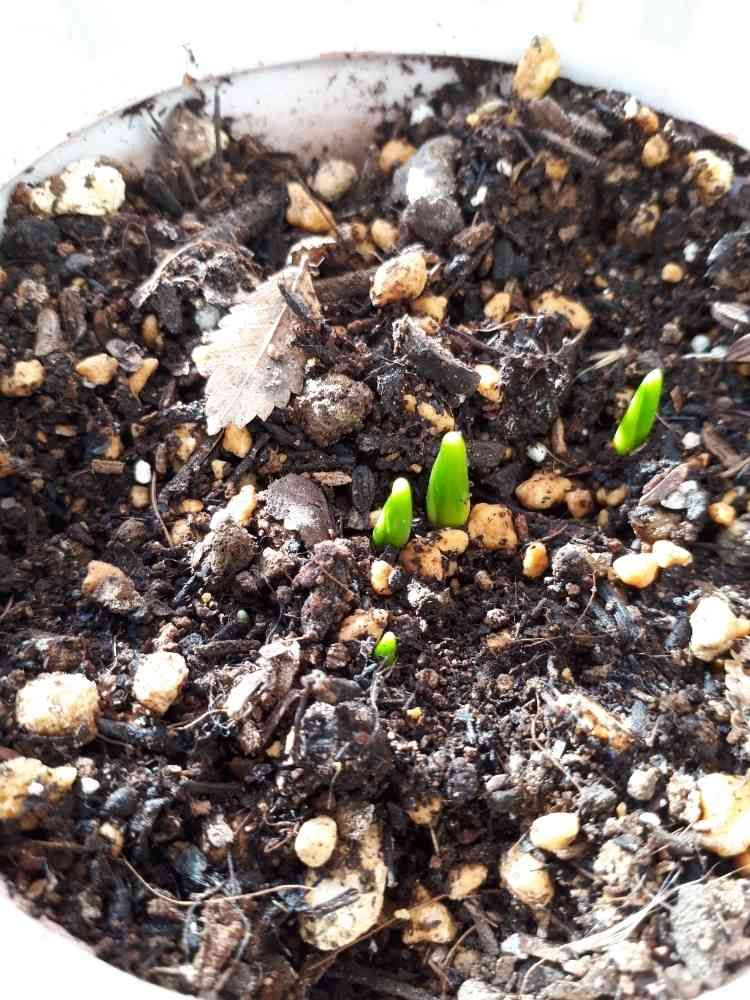 アマリリスを 頂きました。ピンクらしいです。可愛い芽が、ひょっこり💚💚💚