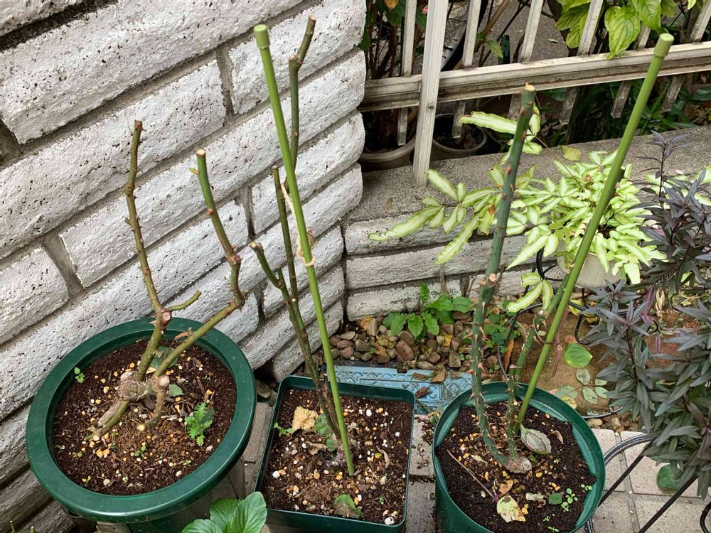 ここには写ってないけど、ミニバラはお花も咲いててこれと一緒に剪定&葉っぱむしったよ。