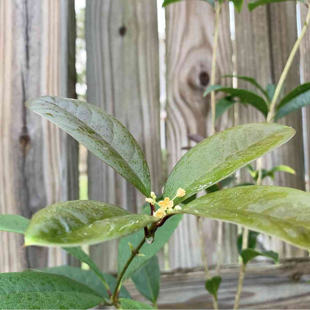 去年11月に届いたキンモクセイの苗に小さな花が咲きました🌼