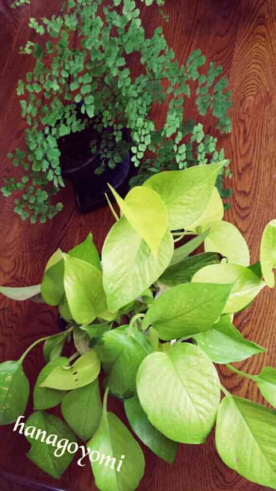 居間で癒しを提供してくれているポトスとアジアンタムです。