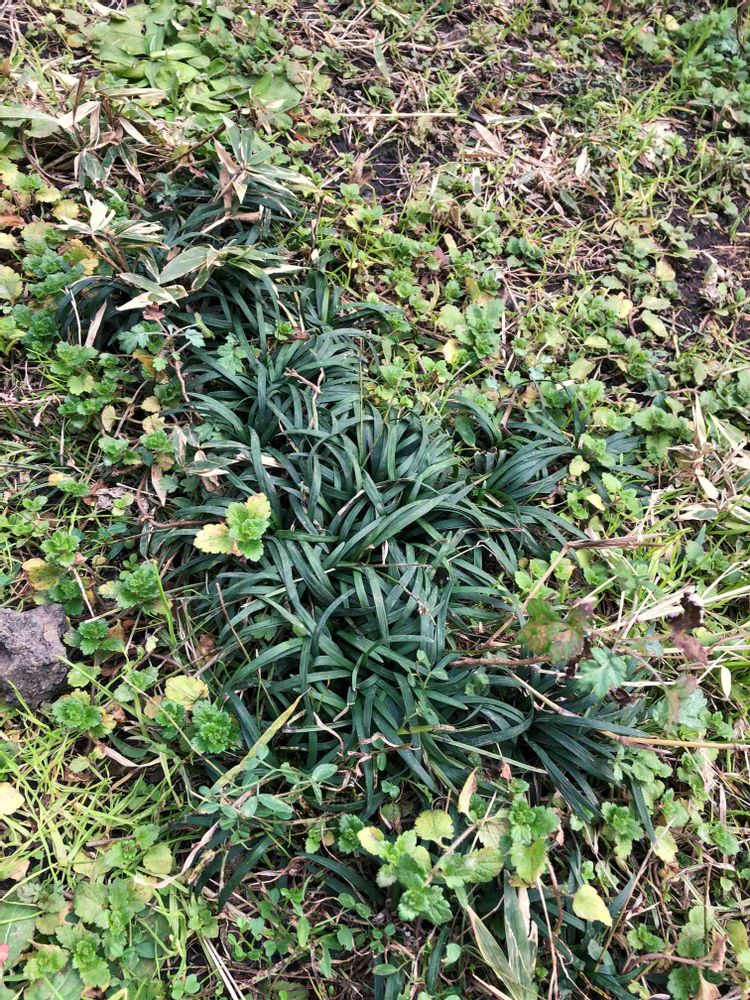 竜のひげかな❓白い小さな花の後黒い実が出来ます。それを小鳥が食べて撒いてくれたのでしょう✨確かにグランドカバーに良いですよ。日陰が好きです😊