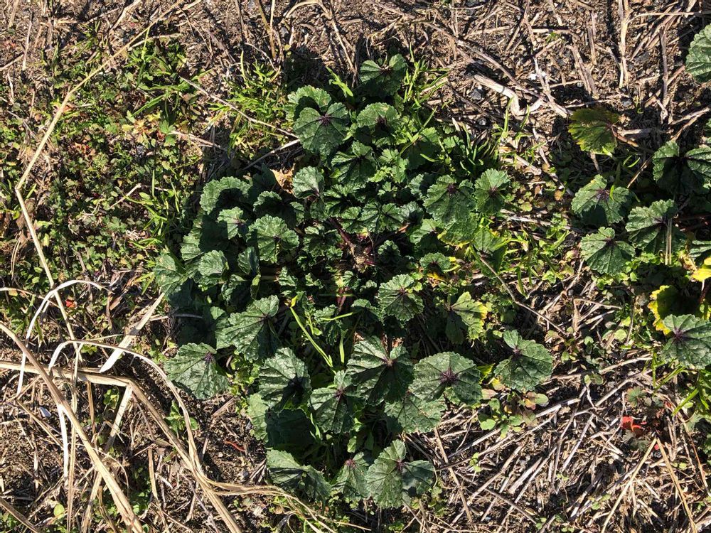 芽を吹いたゼニアオイ、もしくはウスベニアオイの葉