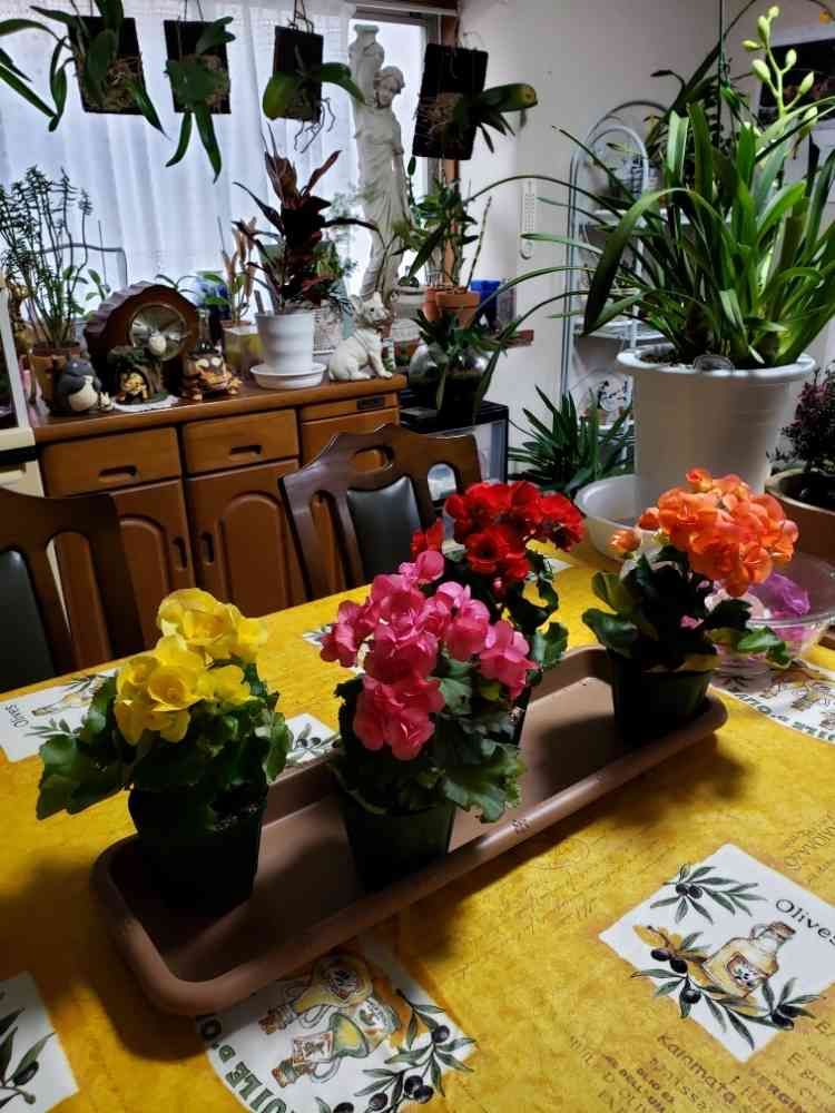 投稿写真は、「ヤナイ園芸」に寄って、購入した「リーガースベゴニア(エラチオールベゴニア)」の四色です。ゲーテの色相環理論の配列にしたがって並べています。これらのベゴニアは、花が終わるまで植え替えせずに観賞してくださいと言われたので、そうしました。これまでは、すぐに植え替えしていたのですが、今回はお店の販売員の方の言うことに従うことにしました。