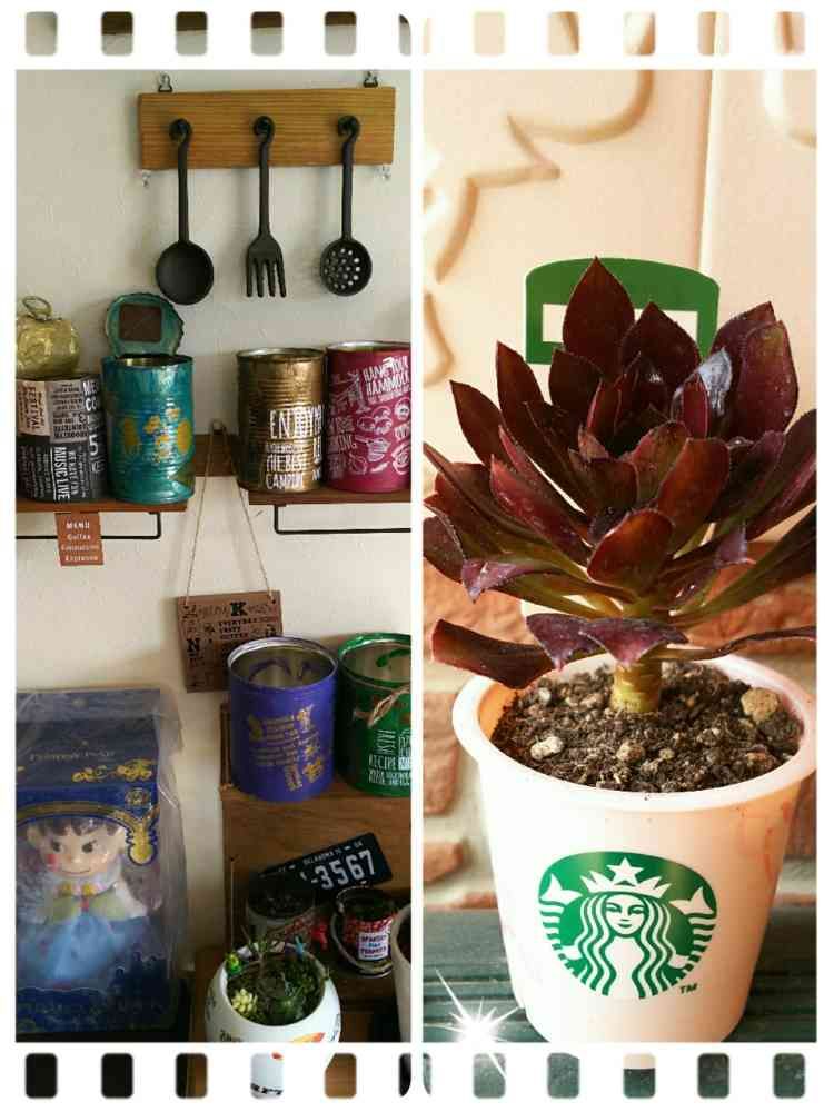 まったく思っているリメ缶にならないー💦次は、教えてもらったコーヒーの粉の出がらしでリメ鉢作ってみたい(*´ω`*)スタバ鉢には、黒法師✨