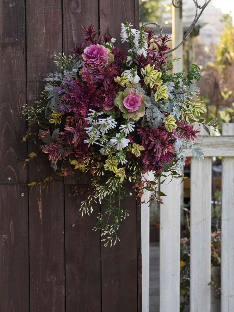 リーフ類メインのハンギングバスケット。半日陰から日向まで飾ることができます。