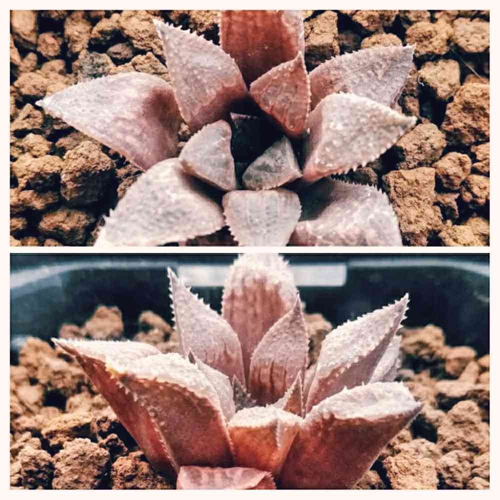 picはベランダ管理のハオルチア63号の🌵シュガープラム🌵お迎えしてからあまり大きくなっていない感じ💦外置きだと年中この色です✨