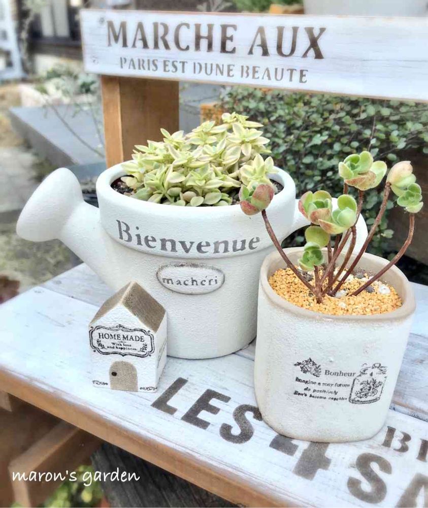 ジョーロ鉢のリメイク❣️素焼き鉢からのリメイクだなんてびっくりです〜😍 こんな鉢に植えられた多肉さんは幸せだね(´∀`,,人)♥*.