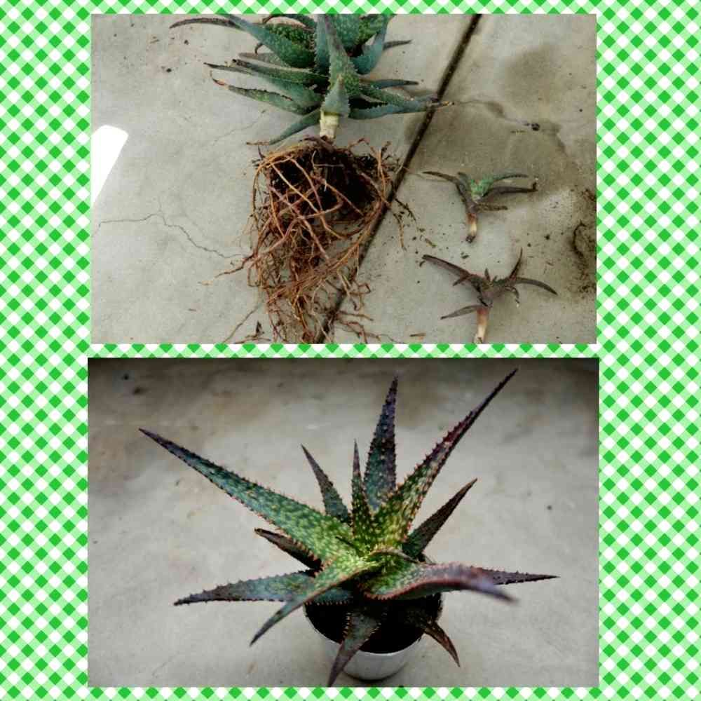 おはようございます。昨日同様、多肉成長シリーズ アロエ「子株編」です。植え替え時に取り外した子株は根も無い状態でしたが、恐竜クンの成長力は凄まじく、半年で一人前になりました!