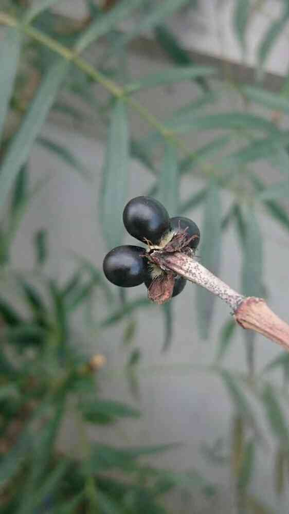 枝の先に黒く丸い実がつくのが特長