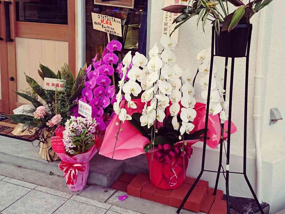 右側のドア横にも同じお店の開店お祝いの蘭達豪華でした😃👍