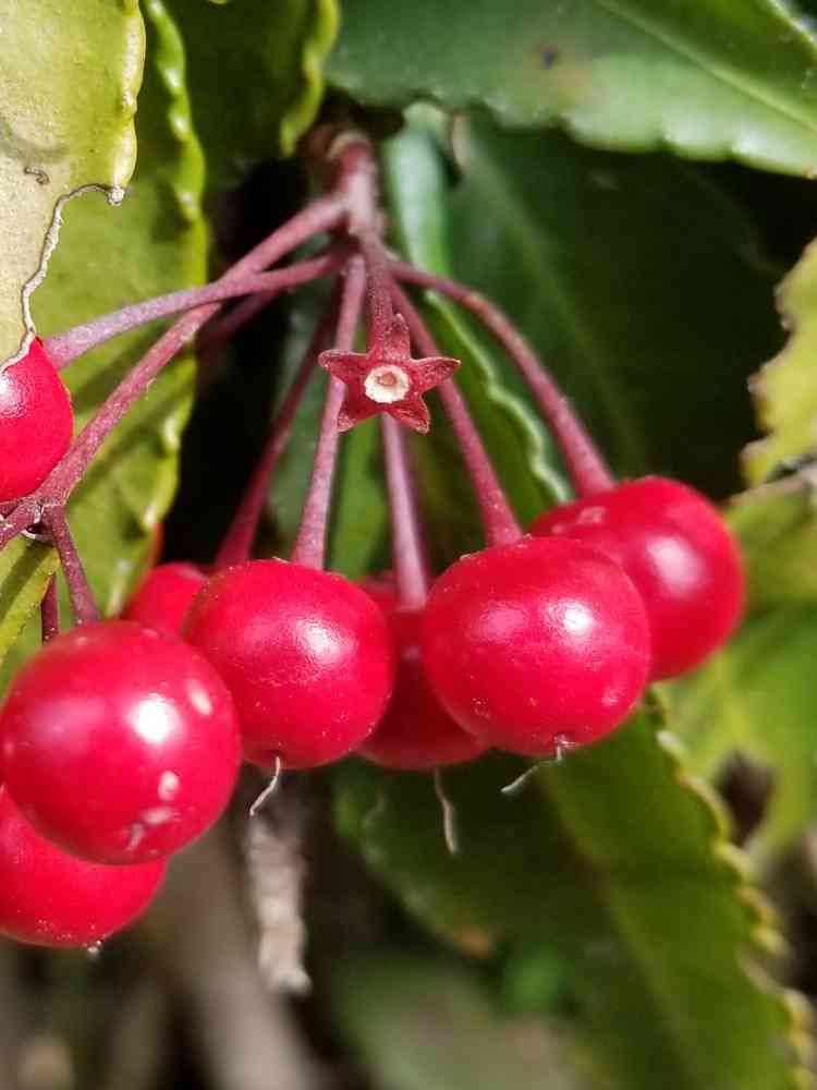マンリョウの実。よく見たら一粒落ちた跡がキレイな星形!